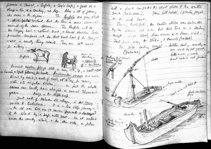 Drawings of a plough, and two sailing vessels on the Nile, from Baines’s journal of his voyage around the Cape to Egypt.